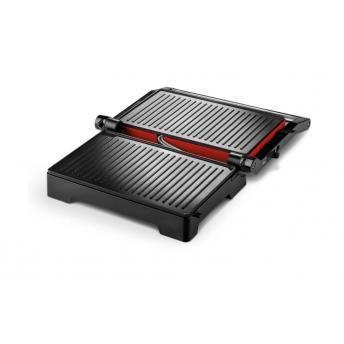 • Con la apertura de placas de 180º, podrás disfrutar de una mayor superficie de cocción y de la posibilidad de preparar sándwiches, bocadillos y otros alimentos de forma más cómoda y versátil.