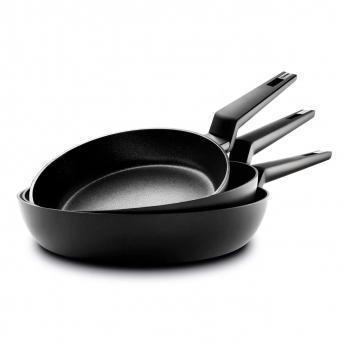 Set de 3 sartenes Castey Titanium Induction. Recubrimiento antiadherente libre de PFOA con partículas de titanio. Base full Induction. Cuerpo de aluminio. Mango ergonómico. Encaje especial para girar tortilla.
