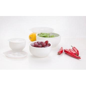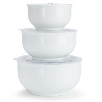 •Set integrado por tres robustas piezas de cerámica lisa de color blanco.