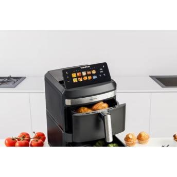 Puedes utilizar los 10 programas preestablecidos para freír tu comida favorita en un solo click. Además, dispone de un ajuste de temperatura de 60º a 200ºC y un temporizador de 90 min programable desde la pantalla táctil digital.